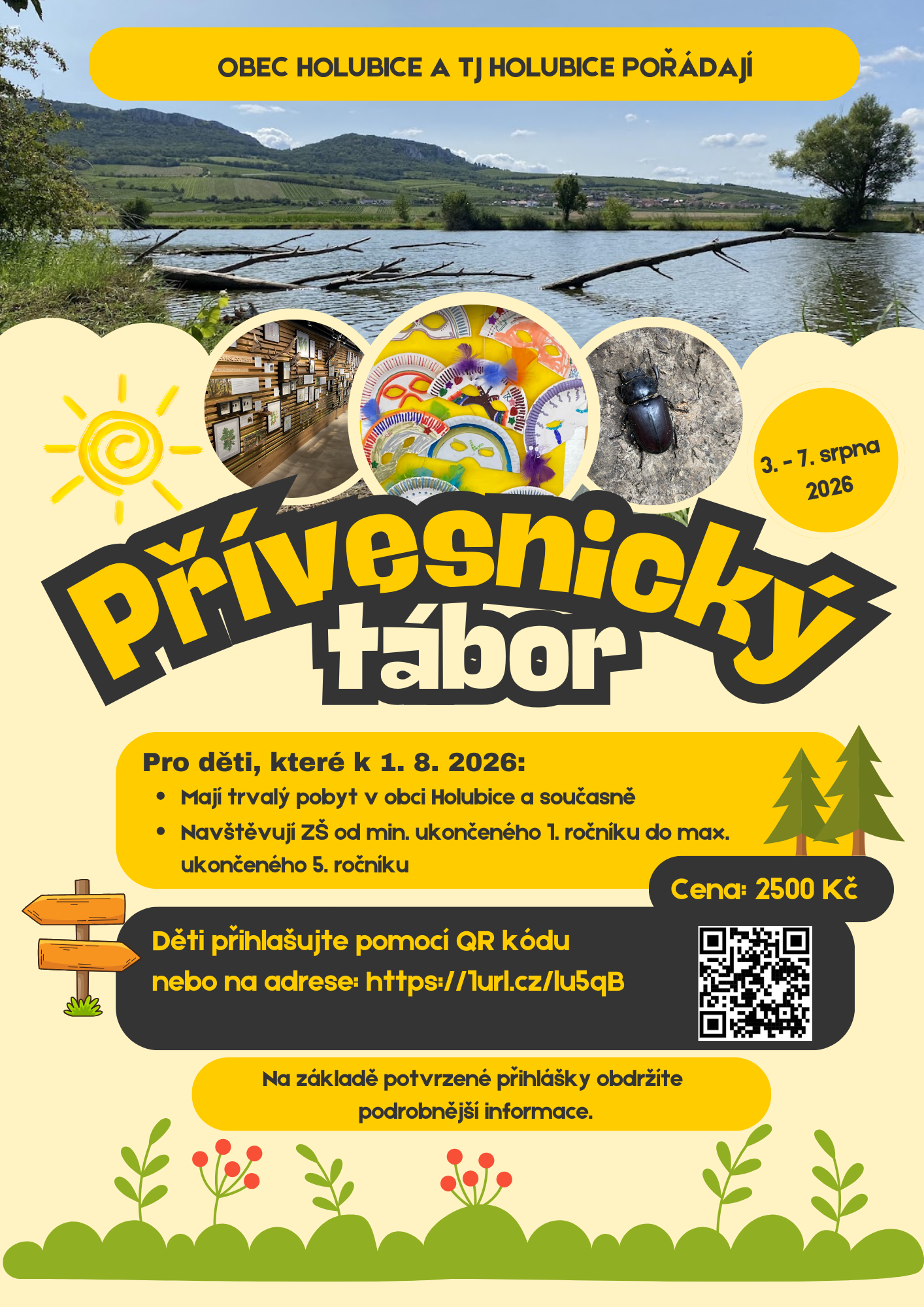 Informace a registrace k přívesnickému táboru v Holubicích v termínu od 3. do 7. srpna 2026